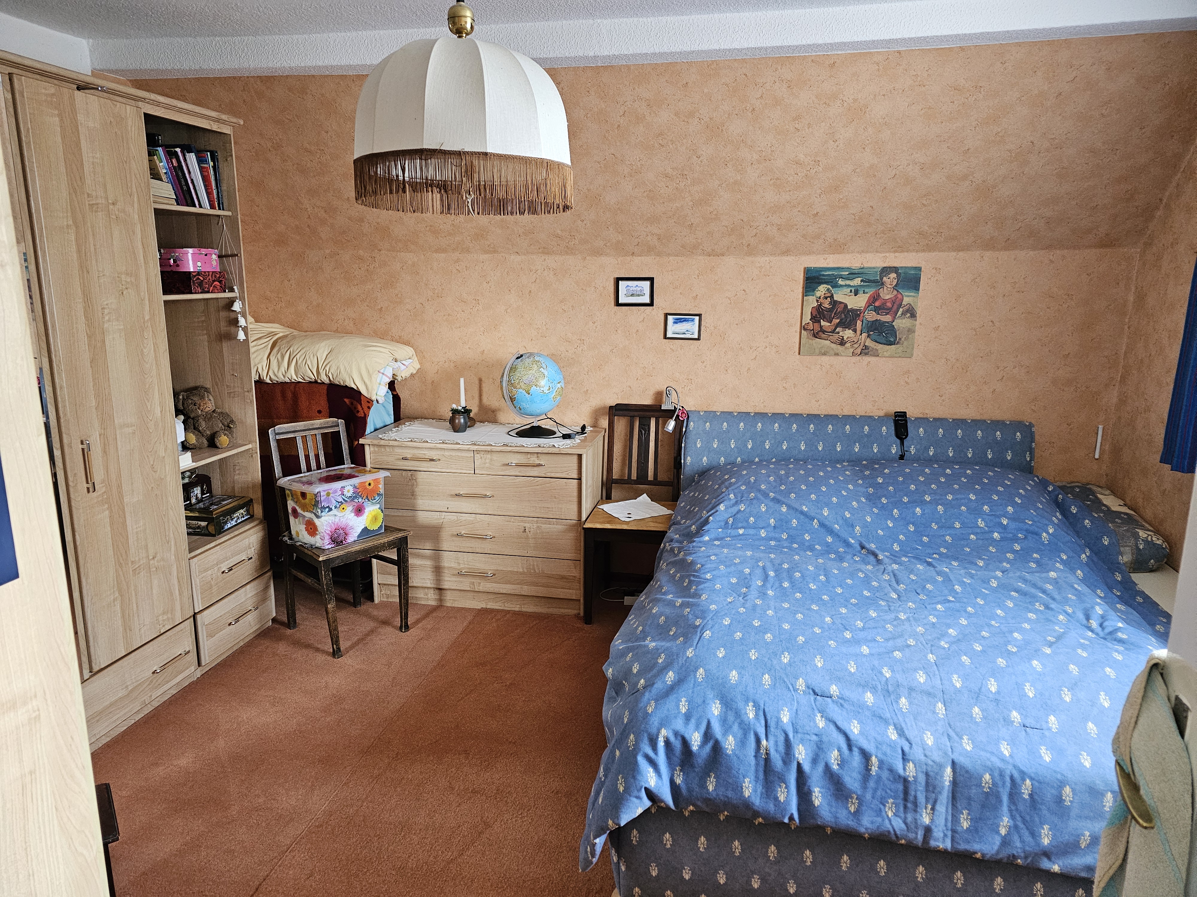 Dieses charmante Einfamilienhaus bietet Ihnen auf ca. 120 m² Wohnfläche ein behagliches und gut durchdachtes Zuhause. Mit insgesamt sechs Zimmern, verteilt auf zwei Etagen, ist genügend Raum für individuelle Gestaltungsmöglichkeiten gegeben. Im Erdgeschoss befindet sich ein praktisches Duschbad, während das Dachgeschoss zusätzlich über ein WC verfügt. Über dem Dachgeschoss befindet sich noch ein teilausgebauter Dachboden mit einem zusätzlichen Zimmer. Die gemütliche Küche lädt zum Kochen und Verweilen ein und bietet direkten Zugang zur beheizbaren Veranda – ein idealer Ort, um auch in kühleren Monaten die Natur zu genießen. Eine angrenzende Speisekammer sorgt für zusätzlichen Stauraum.