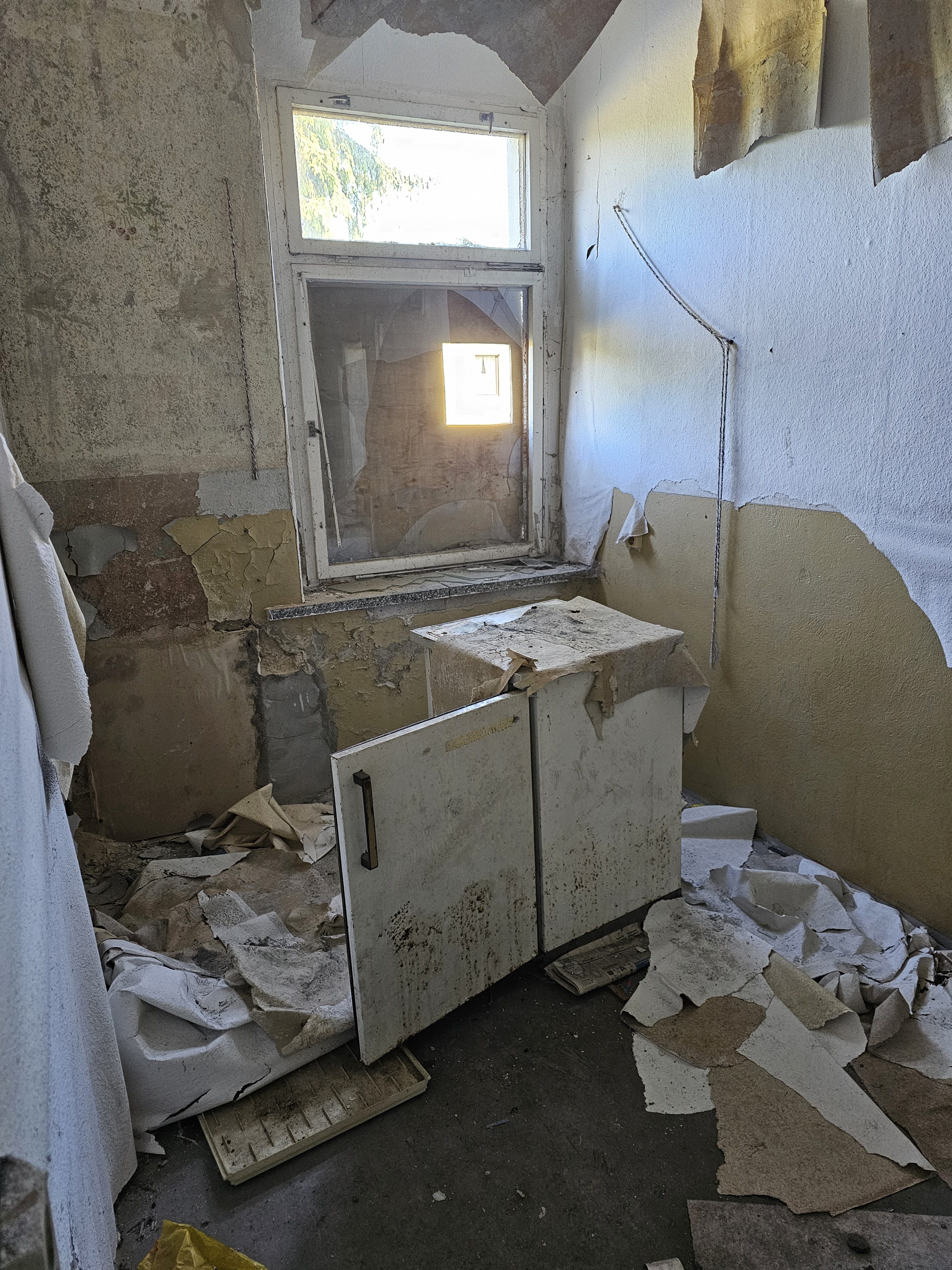 Wirtschaftliche Wertminderungen: Das Gebäude befindet sich in einem stark vernachlässigten Zustand und weist zahlreiche Schäden auf, die sowohl durch Vandalismus als auch durch jahrelangen Verfall entstanden sind. Schon beim Betreten fällt der schlechte Zustand des Flures und der Treppe zum Obergeschoss auf. Die gesamte Fläche ist von Müll bedeckt, und der unsanierte Bereich zeigt deutliche Spuren der Zerstörung. Die Wände sind beschädigt, stellenweise aufgebrochen oder mit Graffiti versehen, während das Geländer der Treppe instabil wirkt und bei der Nutzung ein erhebliches Sicherheitsrisiko darstellt. Im gesamten Gebäude herrscht ein baufälliges Erscheinungsbild. Durch mangelnde Instandhaltung und mutwillige Beschädigungen sind viele Bereiche kaum noch nutzbar. Besonders besorgniserregend ist die Möglichkeit eines Befalls mit Schwamm und Schädlingen, da Feuchtigkeit und Vernachlässigung ideale Bedingungen für deren Ausbreitung geschaffen haben. Die Kellerbereiche sind ebenfalls stark vermüllt, sodass eine genaue Einschätzung ihres Zustands erschwert wird. Im Obergeschoss zeigen sich gravierende Wasserschäden, die durch ein undichtes Dach verursacht wurden. Große Flecken an den Decken und Wänden deuten auf jahrelange Durchfeuchtung hin, die möglicherweise auch die Bausubstanz geschwächt hat. Viele Innentüren sind durch Vandalismus vollständig zerstört oder so beschädigt, dass eine Nutzung ausgeschlossen ist. Die Fenster stammen noch aus DDR-Zeiten und sind in einem schlechten Zustand – undicht, verzogen und teilweise gesprungen. Eine ausreichende Wärmedämmung ist dadurch nicht gegeben. Bäder und Küchen sind faktisch nicht vorhanden oder nicht mehr funktionstüchtig. Sanitäre Einrichtungen fehlen oder sind durch Beschädigungen unbrauchbar geworden. Auch die Heizungsanlagen sind stark betroffen: Mehrere Öfen wurden durch Vandalismus zerstört, sodass eine Beheizung des Gebäudes nicht mehr möglich ist. Hinzu kommt, dass sämtliche elektrischen Anlagen vollständig erneuert werden müssen, da Leitungen und Anschlüsse nicht mehr den aktuellen Sicherheitsstandards entsprechen und ebenfalls durch äußere Einflüsse beschädigt wurden. Gleiches gilt für die Gas- und Wasserleitungen, die sich in einem unbrauchbaren Zustand befinden und dringend einer kompletten Sanierung bedürfen. Insgesamt stellt das Gebäude nicht nur eine große bauliche Herausforderung dar, sondern birgt auch erhebliche Risiken für die Sicherheit. Ohne eine umfassende Sanierung und grundlegende Reparaturen ist eine Nutzung kaum denkbar. Schon das Betreten ist mit einer Verletzungsgefahr verbunden, sodass besondere Vorsicht geboten ist. Der Zustand zeigt, dass über viele Jahre hinweg keine Maßnahmen zur Erhaltung getroffen wurden, wodurch die Schäden kontinuierlich zunahmen. Eine gründliche Bewertung durch Fachleute wäre notwendig, um das volle Ausmaß der erforderlichen Sanierungen abschätzen zu können.